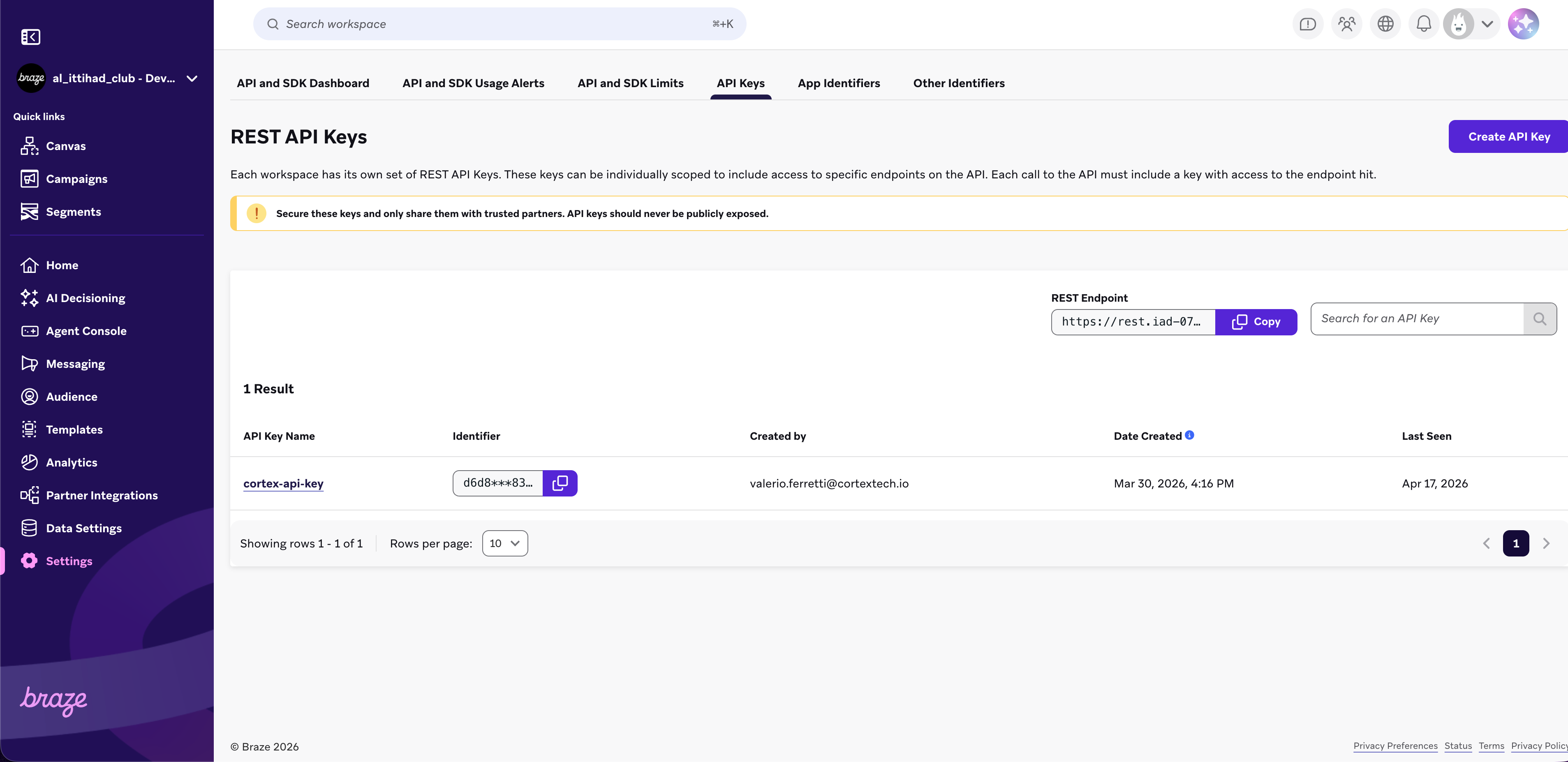 Braze API keys
