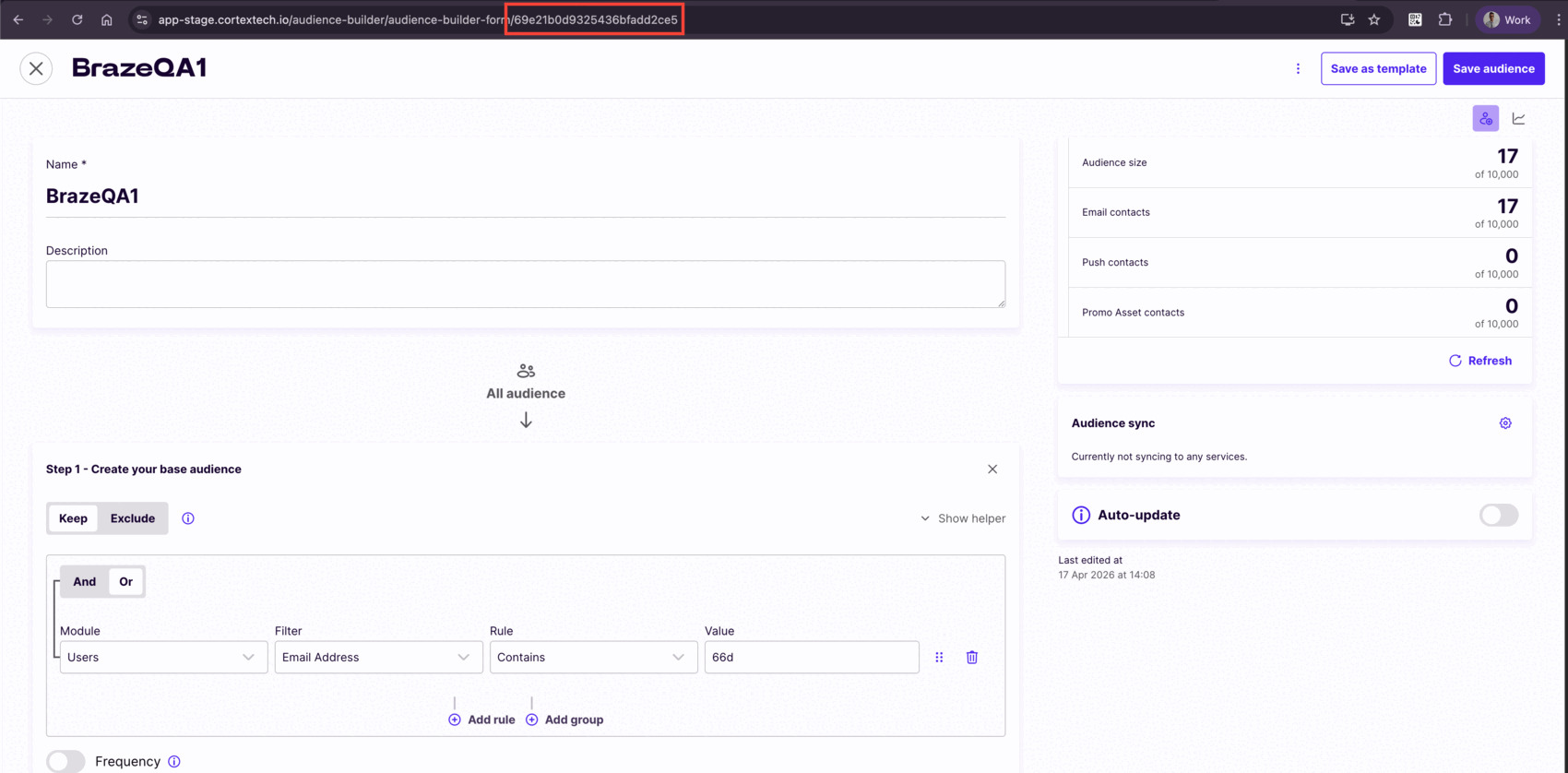 Audience syncing to Braze in Audience Builder