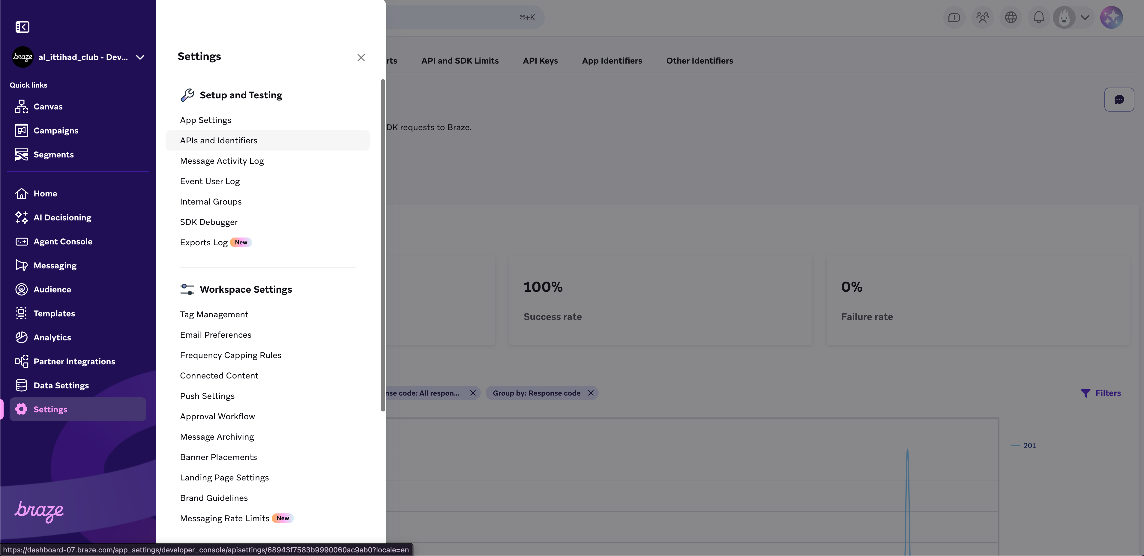 Braze settings